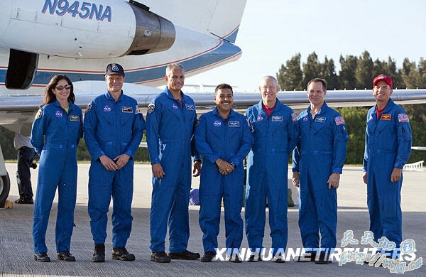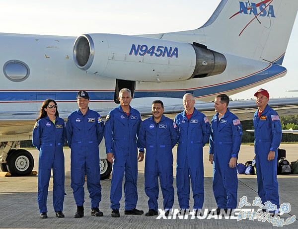 8月19日,在美国佛罗里达州卡纳维拉尔角肯尼迪航天中心,“发现”号航天飞机的宇航员集体合影。经过为期两天的评估,美国航天局当日表示,“发现”号航天飞机可以按计划于美国东部时间8月25日1时36分(北京时间13时36分)发射升空。