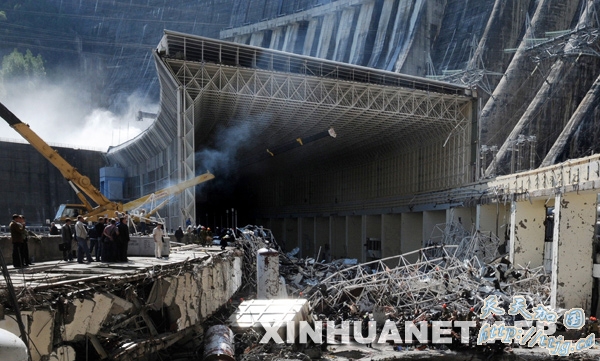 8月19日,在俄罗斯西伯利亚地区哈卡斯共和国,救援人员在萨彦-舒申斯克水电站事故现场进行清理和搜救工作。