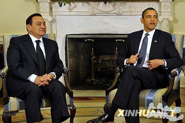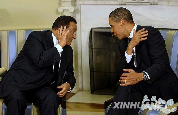 8月18日,美国总统奥巴马(右)在位于华盛顿的白宫椭圆办公室会见来访的埃及总统穆巴拉克。