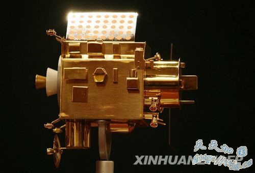 2008年10月22日,在印度斯里赫里戈达岛的萨蒂什·达万航天中心,“月船1号”模型在新闻发布会上进行展示。新华社/法新