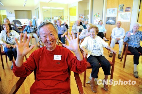 “光纤之父”高锟在美国硅谷的一间老人看护中心内锻炼身体。中新社发 陈钢 摄