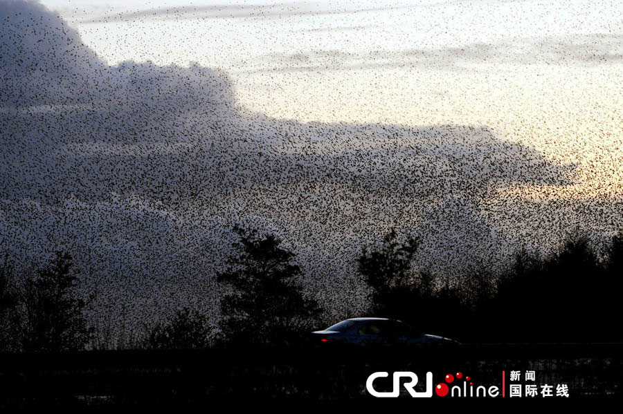 (责任编辑:小芬)2009年11月3日,英国格雷纳,迁徙的椋鸟。