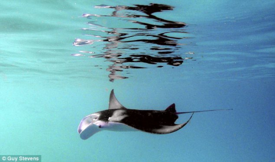 摄影师所站立的这片暗礁就是所谓的“清洁平台”。受伤的蝠鲼常常到这里来疗伤,因为“清洁平台”上一些小型鱼类可以为它们清洁伤口。