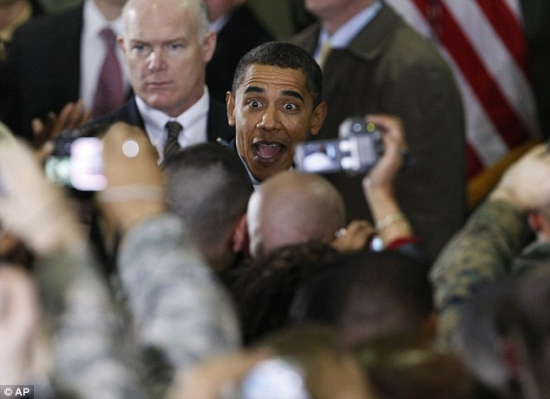 奥巴马在韩国访问时,一下飞机,就被美国士兵簇拥着