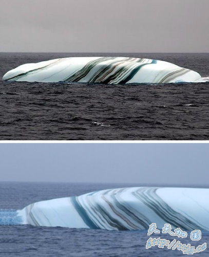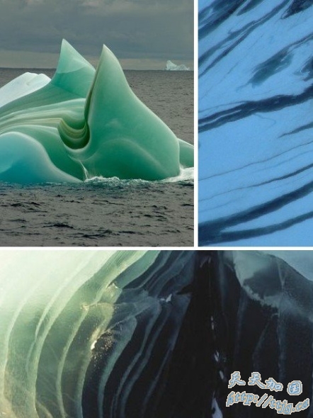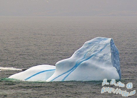 正如记录所显示的那样,并不是所有条纹冰山都源于南极海域。图片中展示的优美蓝痕冰山是在纽芬兰圣弗朗西斯·赖特角附近的北大西洋海域发现的。
