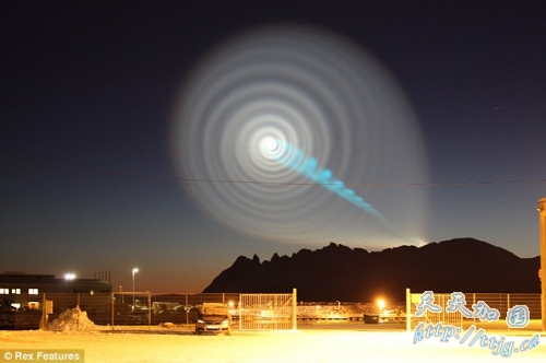 昨日新闻:挪威天空神秘螺旋白光谜底揭开:俄试射导弹失败(图)