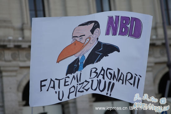 2009年12月5日,意大利首都罗马爆发要求总理贝卢斯科尼下台的50万人大游行。游行示威的组织者将这一天称作“No Berlusconi Day”(没有贝卢斯科尼的一天)。并高举标语要求其辞职。 宽容看待老贝丑闻 对于老贝的桃色丑闻,王女士说,贝卢斯科尼作为政坛人物必定会受到反对者的攻击,对那些指控,“我没有亲眼见到,也没有有力证据证明,真真假假说不清楚。” 意大利23岁的IT工程师法比奥在接受记者采访时说:“报道说他与18岁的漂亮女模特有染。也许在英国、丹麦这些欧洲北部国家是很大的丑闻,政治家很可能因此被迫结束政治生命,但在意大利却不同。有些意大利人会这样想,如果我是贝卢斯科尼,我有亿万家财,我也会像他那样。毕竟谁都喜欢18岁的漂亮女模特。”他说,意大利人眼中,政治和性是两码事。 对于老贝与黑手党的牵连和商业贿赂等丑闻,意大利人却并不客气。27岁的机械工程经理卢西亚诺表示:“我觉得一个黑手党职业杀手的证词并不可信,但贝卢斯科尼为什么不站出来主动澄清呢?”对于商业贿赂等丑闻他说:“作为商人你可以是灰色的、黑色的,但作为政治家你必须是白色的。贝卢斯科尼显然还没有从心理上完成商人到政治家的转变。” |