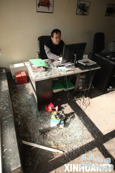 15日,喀布尔发生爆炸,新华社喀布尔分社房屋受损。图为中国驻阿富汗大使郑清典视察喀布尔分社房屋受损情况。新华社记者 王岩 摄