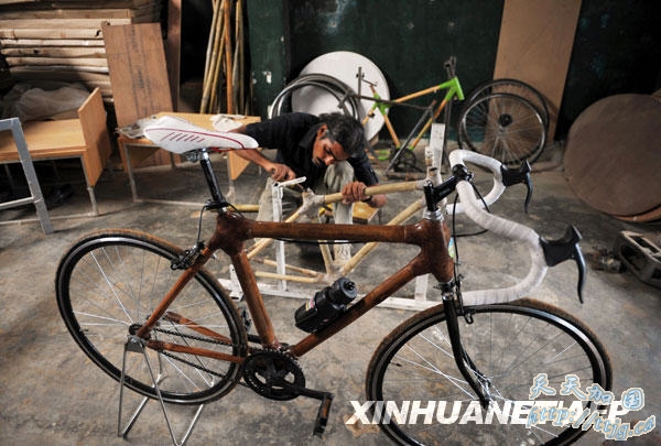 32岁的维贾伊·夏尔马是一名木匠,同时他也是一名自行车爱好者。他用竹子代替钢管制造出了环保自行车。新华社/法新