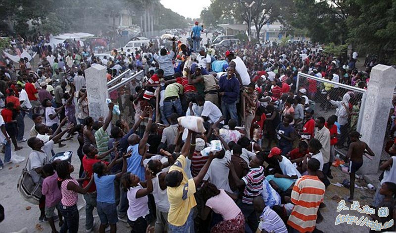 5、人们冒着受伤的危险,四处在损毁的建筑物废墟中翻找用得到的东西。 6、当一批救济品送到并在街上发放时,绝望的人们互相争抢,甚至为此扭打在一起。