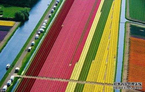 在荷兰西部的利瑟(Lisse),五颜六色的郁金香田地一直延伸到目之所及,这里的农民期望通过把鲜花卖给全世界的花店和市场来获取巨大的利润。