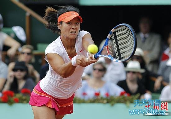 当地时间6月4日,法网女单决赛在罗兰·加洛斯体育场举行,由世界排名第五、中国选手李娜迎战世界排名第四、意大利选手斯齐亚沃尼。图为李娜在决赛中。
