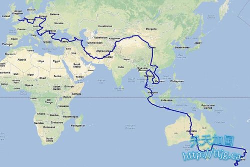 目前,凯特和史蒂夫才从澳大利亚北部的达尔文港进入马来西亚,还将经过老挝、柬埔寨、越南、中国、巴基斯坦、伊朗、阿塞拜疆、亚美尼亚和格鲁吉亚,然后由土耳其进入欧洲,最后抵达“老家”英国。