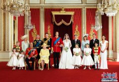 4月29日,拍摄于白金汉宫内的威廉王子婚礼官方全家福照片公布。...