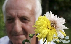 图为威廉安德伍德向记者展示他所种出的黄白双色菊花。 据英国媒体8月23日报道,英国萨福克郡一位73岁退休卡车司机威廉安德伍德在自家花园中种出了一株双色菊花。该菊花为黄白两色,大小与普通菊花一样。据植物学家介绍,出现双色菊花主要是因为基因突变所致...
