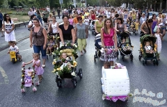 8月17日,在匈牙利凯奇凯梅特市文化节期间,年轻的妈妈们推着用鲜花装饰的婴儿车参加游行。当日,凯奇凯梅特市举行推婴儿车游行。该市1934年首次举办类似的游行活动,当时的口号是凯奇凯梅特是水果和儿童的城市。新华社发(乌伊瓦里山多尔摄) 8月17日,在匈...