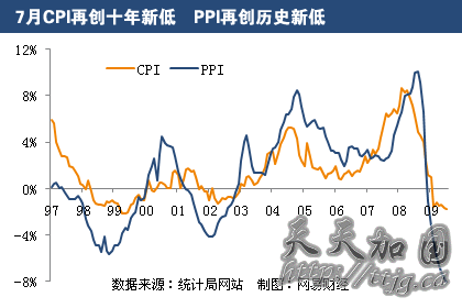 7月份,工业品出厂价格同比下降8.2%(上年同月为上涨10.0%),降幅比上月扩大 0.4个百分点;1-7月份,工业品出厂价格同比下降6.2%(上年同期为上涨8.0%),降幅比上半年扩大0.3个百分点。7月份,生产资料出厂价格同比下降10.1%,其中采掘工业下降23.8%,原料工业下降12.1%,加工工业下降7.4%;生活资料出厂价格同比下降2.3%,其中,食品类价格下降3.1%,衣着类价格下降0.6%,一般日用品类价格下降1.9%,耐用消费品类下降2.8%.7月份,工业品出厂价格环比上涨1.0%,已连续4个月环比上涨。