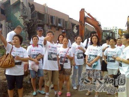 资料图:8月5日,7号楼购房者阻止对倒塌的楼盘的清理。
