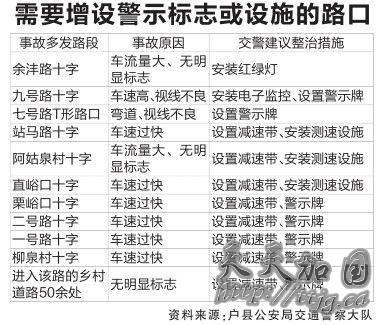 目前,仍有50多个村口需尽快设置减速带、警示牌;余沣路十字、站马路十字、柳泉村十字等十个十字路口,因车速过快,急需设置红绿灯、电子监控、测速设施、减速带等。