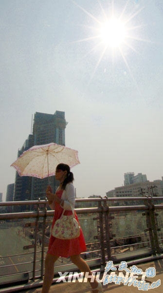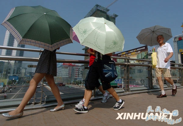 8月19日,合肥街头的行人打伞抵挡烈日。连日来,安徽大部分地区持续出现最高气温超过35℃的高温天气。安徽省气象局也于8月18日9时发布了高温黄色 预警信号。据预警信号显示,从18日起安徽省江淮南部以及江南地区的最高气温将连续3天维持在35℃以上。新华社发(郭晨 摄)