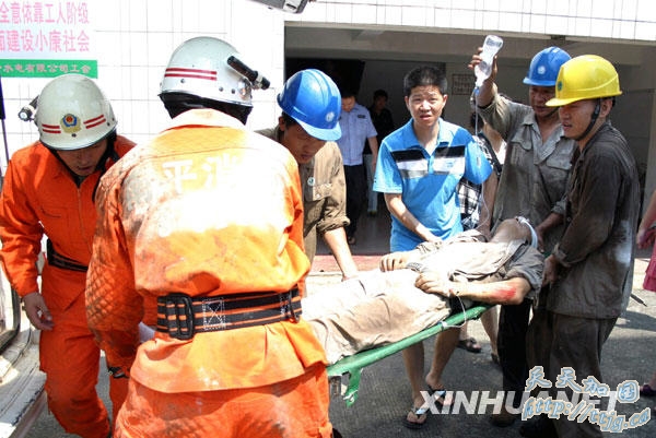 (责任编辑:素素) 8月20日,救援人员将跌落深坑的工人救出并送往医院救治。当日,福建省顺昌县贵岭水电站一名工人跌落至一个深达10米多的深坑中,身受重伤无法脱身,救援人员经过半个小时的努力,终将这名工人从深坑里救出送往医院救治。新华社发(陈柏材 摄)