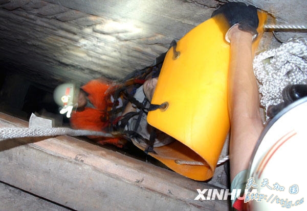 8月20日,救援人员将跌落深坑的工人救出并送往医院救治。当日,福建省顺昌县贵岭水电站一名工人跌落至一个深达10米多的深坑中,身受重伤无法脱身,救援人员经过半个小时的努力,终将这名工人从深坑里救出送往医院救治。新华社发(陈柏材 摄)
