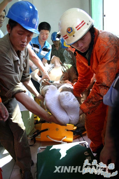 8月20日,救援人员将跌落深坑的工人救出并送往医院救治。当日,福建省顺昌县贵岭水电站一名工人跌落至一个深达10米多的深坑中,身受重伤无法脱身,救援人员经过半个小时的努力,终将这名工人从深坑里救出送往医院救治。