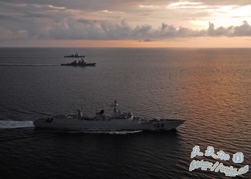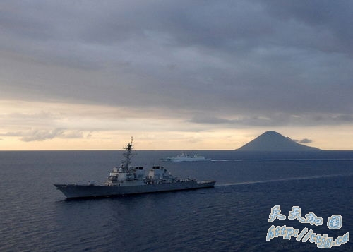 环球时报8月24日报道 中国海军广州舰参加印尼独立64周年国际舰队检阅活动时,巧遇美军舰队。广州舰在印尼万鸦老以北附近海区,与美国“伯克”级驱逐舰“菲茨杰拉德”号和“麦克坎贝尔”号进行了舰艇编队运动演练及通信操演。