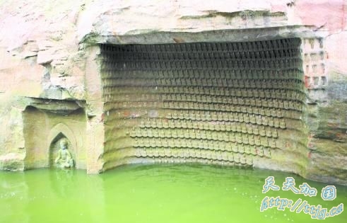 既然是文物,为何任其放置?眉山市全国文物普查领导小组办公室副主任张志刚告诉记者,文物部门经过论证之后,决定让千佛岩的佛像泡在水中,此举是较为妥善的保存方式,泡在水中虽说要被水侵蚀,但比起裸露在外的自然风化而言,损失则小很多。