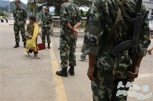 昨日一早8时许,记者站在警戒线外远远就能看到,在南伞口岸上,中国边防武警正在打扫卫生,等待命令开放中国南伞口岸通往缅甸的一边通道。