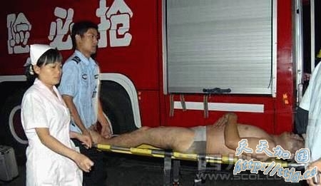 救援人员从现场救出一名伤者。