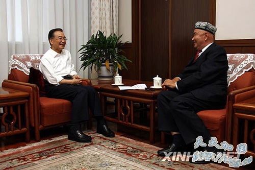 因为之前参加会议的缘故,达吾提·阿西木戴着维吾尔族小花帽,西装笔挺、皮鞋锃亮。而总理穿着一件白衬衫挽起了袖口,十分家常。温家宝热情地让他坐下,回忆起在新疆见面时的情景:“那年,我是坐火车赶到你们那里的。到你家时,70多岁的老妈妈正在烧火做饭,那时她还很悲痛。”
