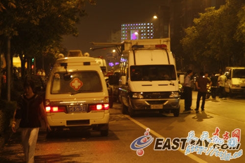 距离今天下午3点半人质挟持事件发生已经7个半小时,守候在现场的东方网记者看到,陆续有便衣警察携带纸箱、灯罩、水等物资进入宾馆,还有一批警察拎了一个铁箱子进到宾馆里。在东方网记者守候的区域聚集了众多媒体的记者,由于不少记者也已经等了将近5个小时,现场的民警还给每位记者发了一瓶水,不过当谈到宾馆里发生的情况,现场民警马上三缄其口。