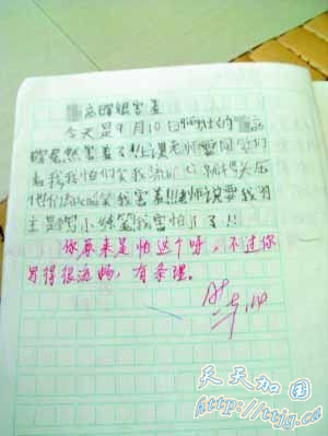 小彦晖在作文中写“害怕极了”。