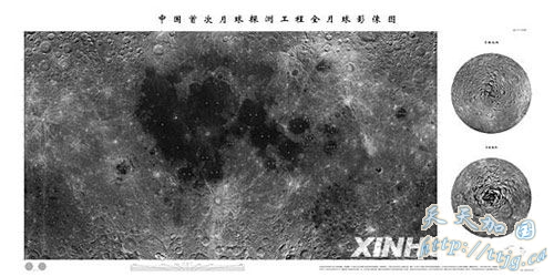 2008年11月12日,依据嫦娥一号卫星拍摄数据制作的中国第一幅全月球影像图正式公布。新华社发