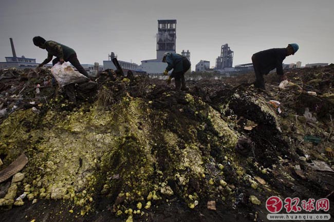 广东省贵屿镇河流、水塘都已被污染,村民们只好在被严重污染的水塘里洗涤 2005年11月25日