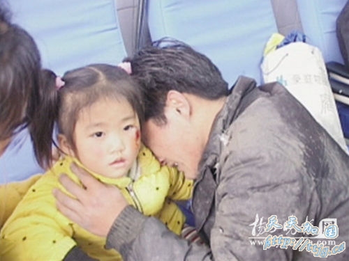记者从当地八百桥医院了解到,小苗苗的脸部仅是皮外伤,除了受到惊吓外,并无大碍。而她的爸爸则全身多处软组织受伤,正在治疗中。据介绍,年轻的妈妈姓杨,今年31岁,当天上午送女儿去幼儿园,没想到,途中遇此不幸。目前,警方正在对事故原因作进一步调查。