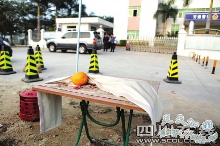 死者家属在交警队门口摆起灵堂
