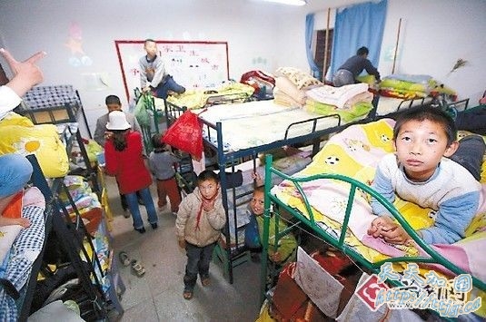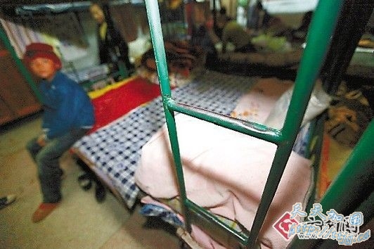 小勤就是用红领巾将自己绑在这种高低床上 记者 付兴华 摄