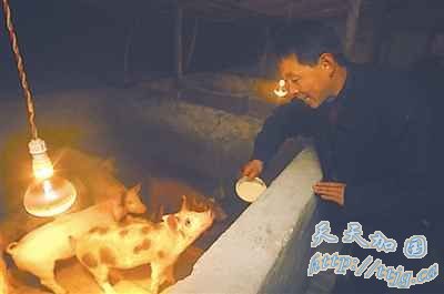 杨贤玺2009年4月和其他三位被清退的老师一起承包了一家养殖场,因为行情不好,他们还没有盈利。杨贤玺对小猪仔照顾得很细心。