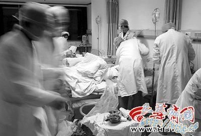 “爆炸发生几小时后,副院长徐永刚便和烧伤科医护人员赶赴蒲城县,2日凌晨2时许,4名重伤者被接到烧伤科。”昨日,省人民医院烧伤整形医学美容外科主任张振信说,随同而来的蒲城医护人员,直至将伤者送到医院后才离去。“伤者入院后,我们立即进行了抗休克和抗感染治疗。”张振信说,烧伤外科8名医生及9名护士全部到岗,从目前情况看,4名伤者均系深度(2~3度)烧伤,烧伤面积最大的85%,最小的系唯一的女性伤者,达20%。