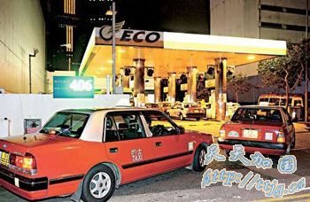 很多的士及小巴3日都转往中石化以外的油站加气,令这些加油站大排长龙。(图片来源:香港大公报)