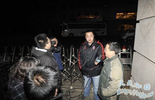 2010年1月8日凌晨,一名负责人在获救船员他们康复疗养的宾馆,位于湛山三路的海韵楼 外接受采访。