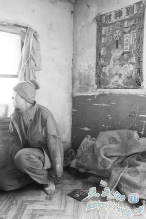 平顶的房子只剩下一半,另一半已经被拆得只剩下了空架。门旁堆满的树枝烧柴和废旧物品,令记者确认这正是“无手妈妈”曹中娥的家。推开露着缝子的木门,再掀开挡风用的棉帘,屋内有一铺小炕。炕上站着一个戴帽子的女人,左边的袖筒空空荡荡,右边露出袖口的是一截光秃秃的残臂,顶端布满了老茧和伤口。在她脚边坐着一个瘦弱的男孩,窝在一个看不出颜色的褥子里取暖。社区塔书记告诉记者,这就是曹中娥和她18岁的儿子张培超。