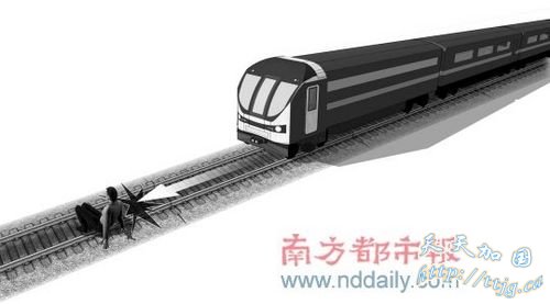一辆从长沙方向开来的火车在6日上午7时许靠近了广州东站,司机说,当时该车以每小时39公里的速度行驶着。突然,他看到前方200米左右的铁轨上,坐着一个人。