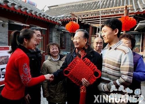 这是温家宝在前门街道草厂9条3号院看望居民。新华社记者姚大伟摄