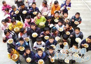 这学期,何胜利不但能在学校吃上热腾腾的午餐,还不要钱。每天,她都能从老师那里拿到一张“免费午餐券”,吃上一荤三素。周末,何胜利还可在学校花一块钱买两个大包子带回家给爷爷奶奶:“包子里有肉,这样他们也能吃上肉了。”