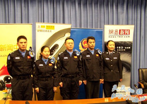 这是增援海地的4名维和队员首次集体亮相,从左到右依次为 施金东(宣传,接钟荐勤)、段中慧(联络官,接和志虹)、胡运旺(政委,接李钦)、心理医生何光伟、公安部主持人