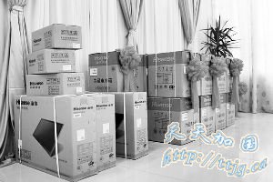 帖中婚礼现场用于抽奖的彩电冰箱等照片