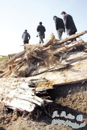 新华报业网-扬子晚报1月27日报道 前天早上,在南京市高淳县固城镇的芜太公路扩建项目一施工段,有西汉东汉古墓10余座,遭施工挖土机兜底挖出,所有出土文物已经不见所踪,只剩下一些陶罐碎片和楠木棺材板被随意丢弃。昨天上午赶到现场的南京市博物馆的相关专家,看到10余座汉墓被毁的劫后惨景,感到痛心疾首。呼吁将固城遗址附近也列入南京市地下重点文物保护区。